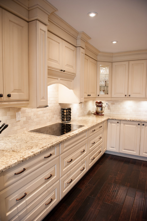 Antique White Kitchen Cabinets Backsplash : Refaced satin white shaker style kitchen cabinets enabled this homeowner's budget to afford granite countertops!. The wilora eastland antique white kitchen cabinet collection adds sophisticated elegance to any space. Wooden cabinet handles personalize the cooking space while reinforcing the seaworthy vibe. Antique white kitchen cabinets are extremely versatile. Explore alibaba.com and find attractive antique white kitchen cabinets across a plethora of ranges. Backsplash ideas for kitchens with granite countertops.